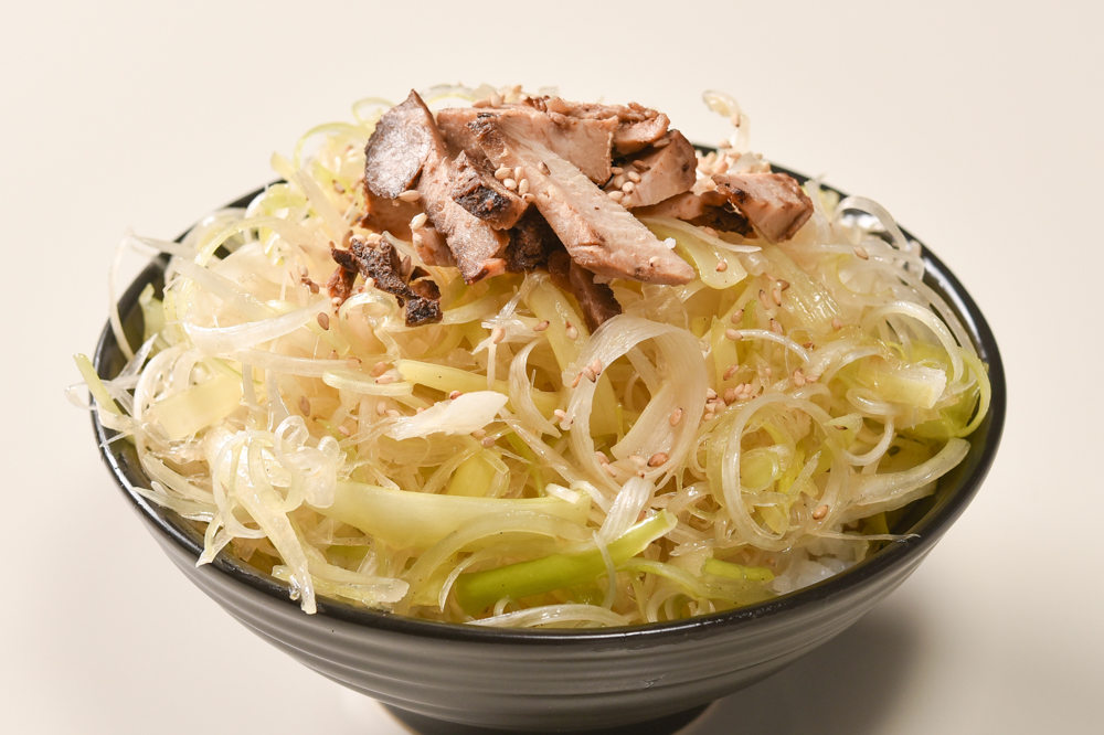 ごま油とオリジナルスパイスで和えたネギがさらに旨みを一層強調する、ネギラーメン(260B)も人気。