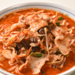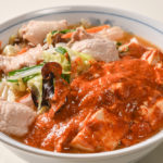 さらなる辛さの高みを目指すのなら、サウナ以上に汗が出ると噂のサウナラーメンもいい。見るからに辛そうな真っ赤なスープは、力強い風味を最大限に引き出すよう、唐辛子を独自にブレンド。見た目のインパクトとは裏腹に、一口すすれば肉や野菜から出る甘みも絡み合い複雑玄妙、スッキリと爽快な旨辛味に仕上がっている。