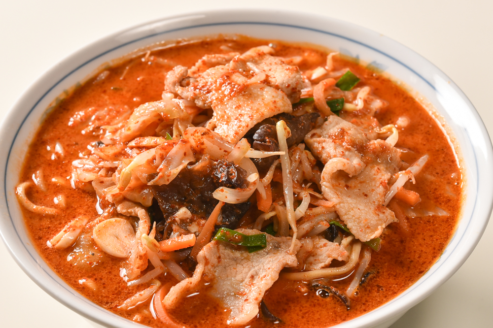 味噌味のタンメンに激辛麻婆をのせスパイシーに仕上げた旨辛タンメン(250B)。辛さにハマる