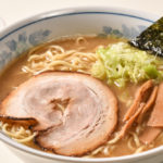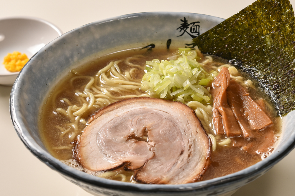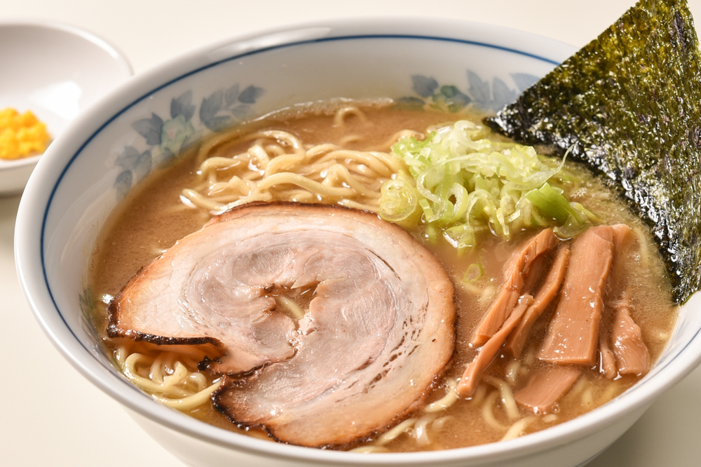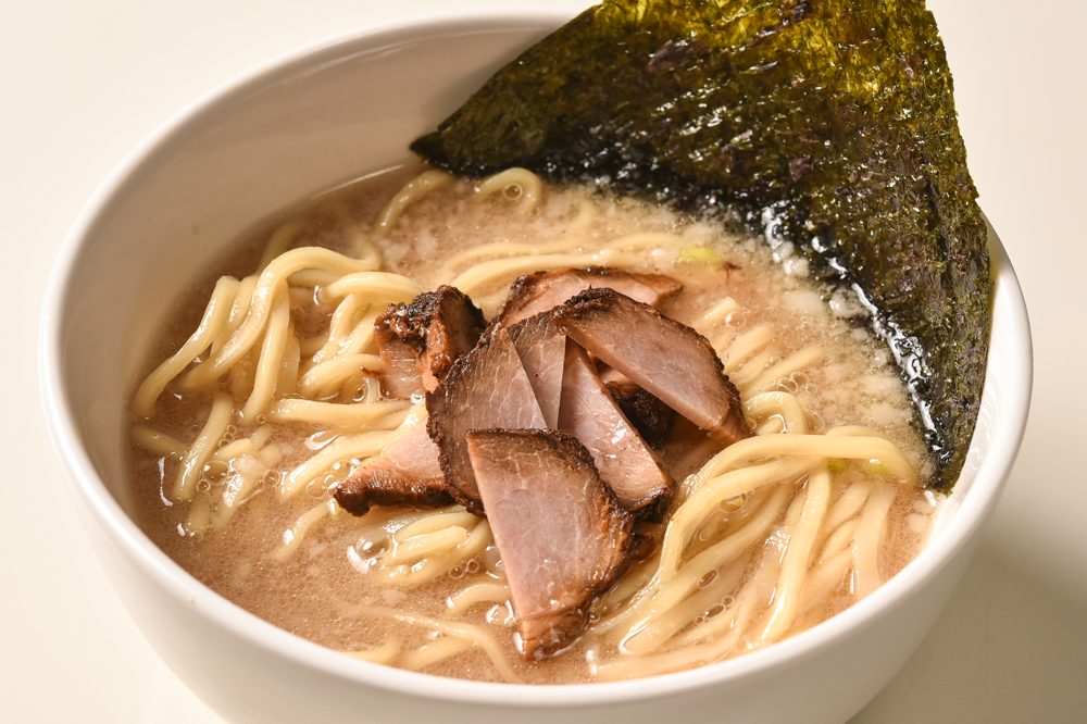 安定の王道スタイルがお好みであれば、豚骨醤油ラーメンで心ゆくまで味わえる。豚骨のコクとキレが際立つスープと舌にも滑らかな背脂、柔らかなチャーシューも相まって、あのロードサイドのチェーン店で食べた記憶がよみがえる。