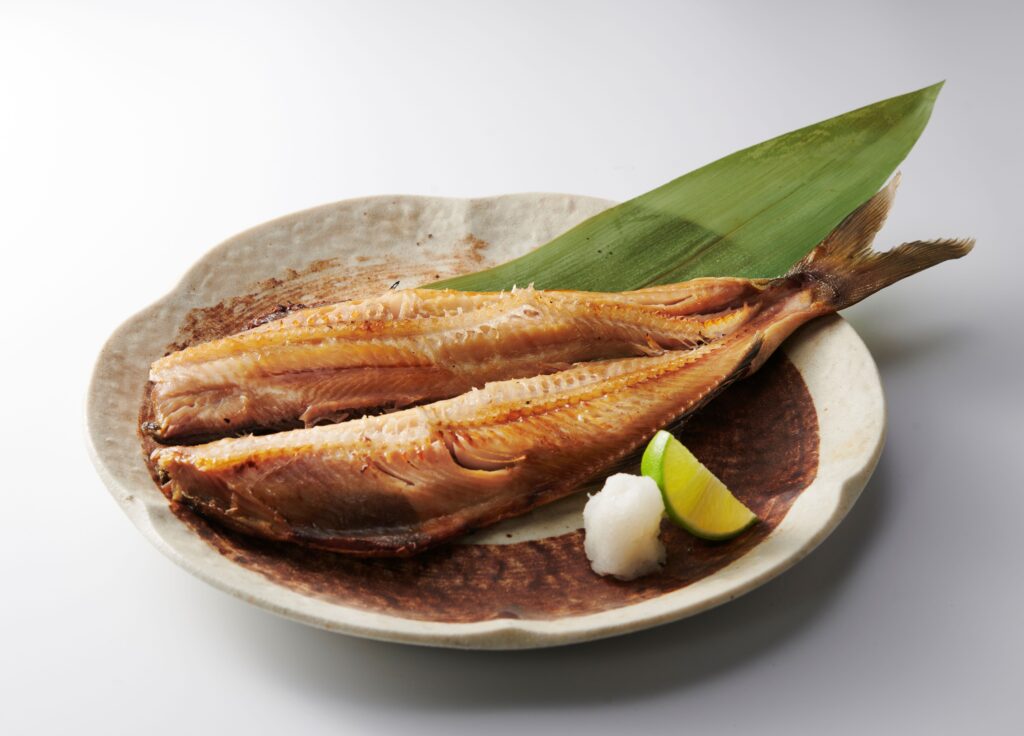 素材の旨みが存分に引き出された炭焼きはお酒のお供にも最適。「ほっけ 380B/一尾」