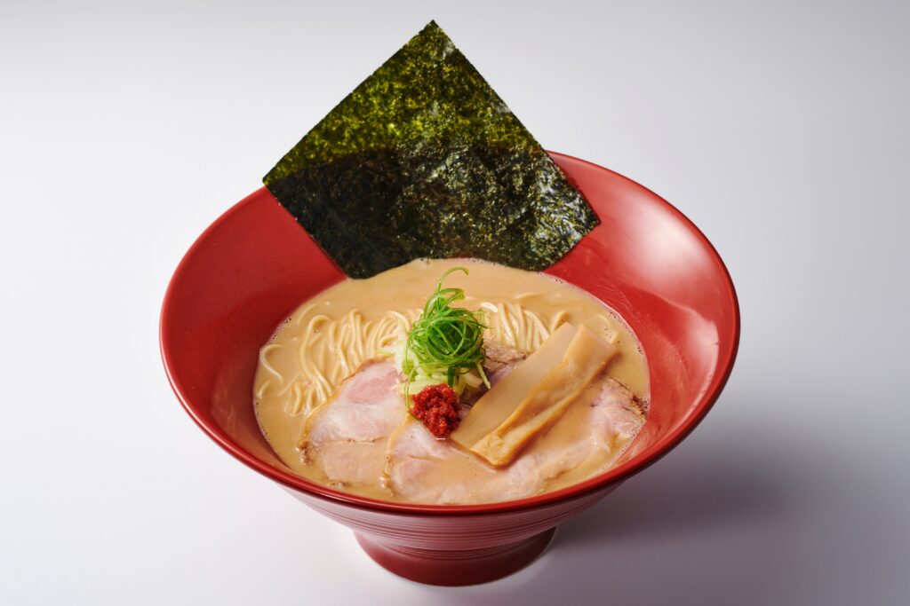 “呼び戻し” と言われる永遠に無くならない独特の製法で3日間かけ作られる豚骨スープ。一般的には濃度計が使用されるが、池上氏は濃度計を使用せず匂いや湯気の立ち方、色で最適な状態を感知するというまさに熟練の技。豚骨独特の臭みや脂っぽさが無く女性でも飲みやすい仕上がり。「真熟成豚骨ラーメン 290B」