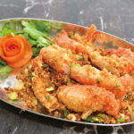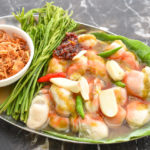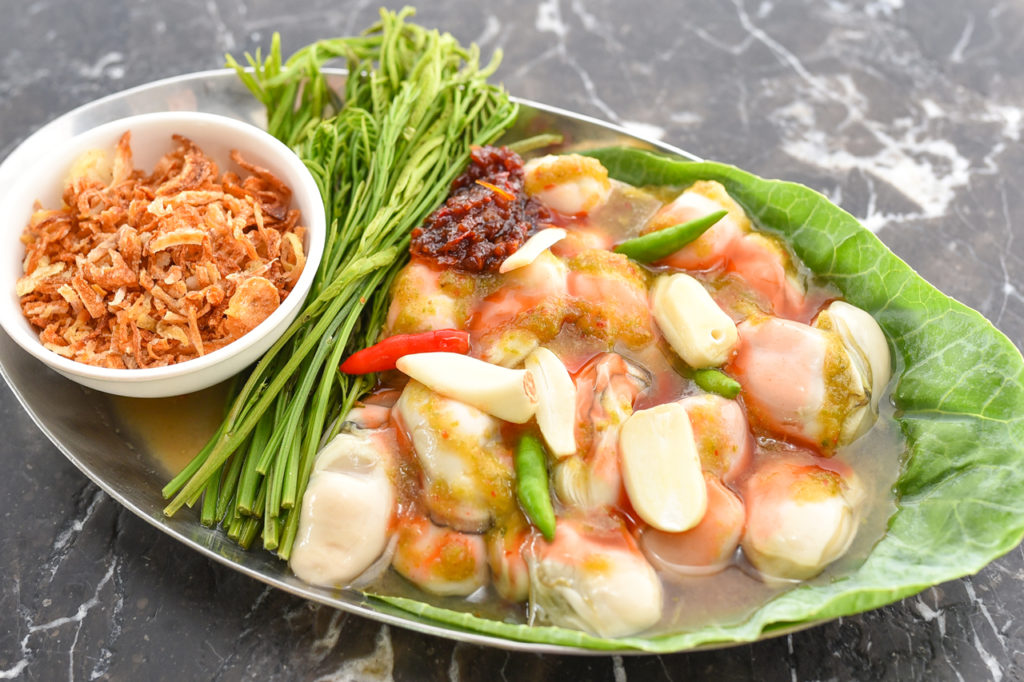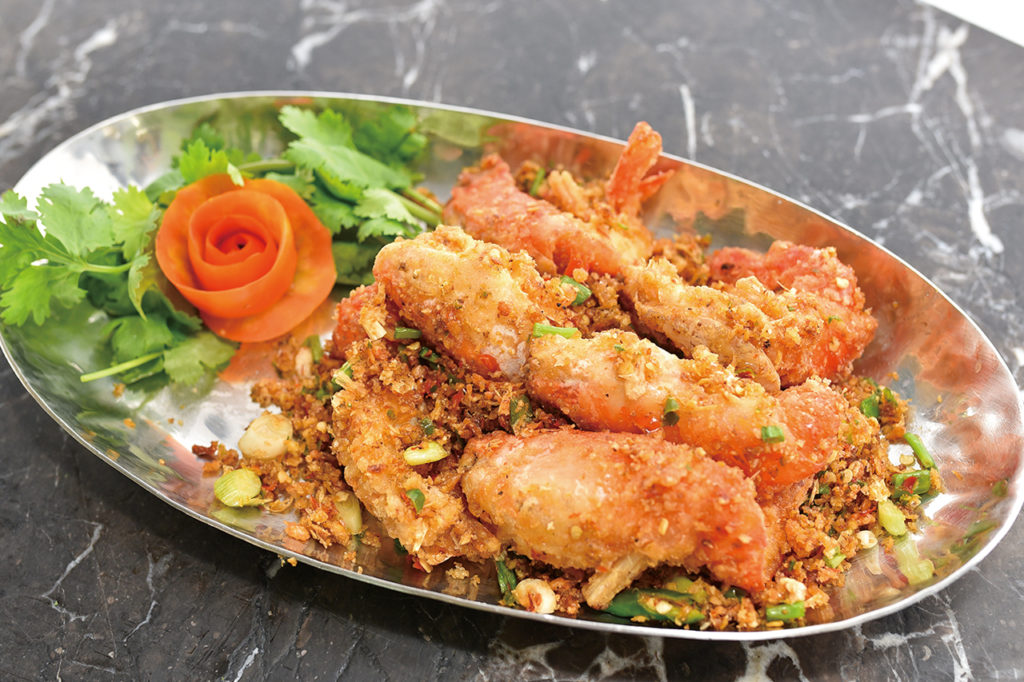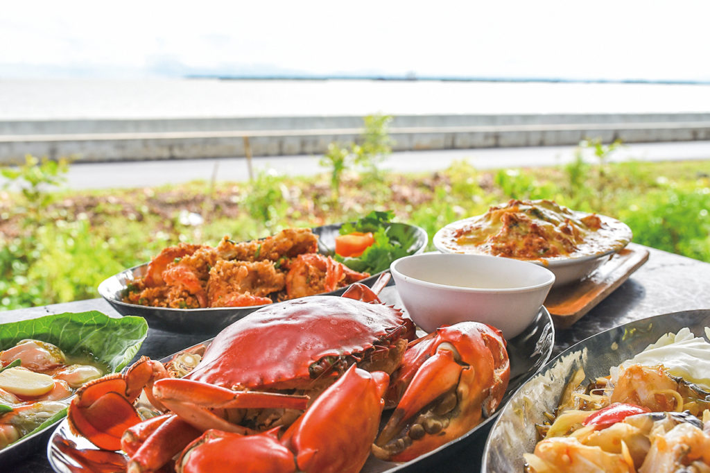 シラチャーまで遠出しなくても、気軽に“海辺でシーフード”が叶うのがこちら。サムットプラーカーン県のバーンプーエリアにあり、BTSスクンビット線の終点ケーハ駅からタクシーで10分弱。お店はチャオプラヤー川の河口に面しており、180度のシービューが望める。夕方に訪れれば、夕陽に染まる海を眺めながらリラックスした時間が過ごせるはずだ。魚介類はチョンブリーから毎日仕入れている。お店一番の人気メニューは「ソムタム・プーマー」だそう。ワタリガニをまずよく冷やしてからナンプラーに半日漬けて、ソムタム(パパイヤサラダ)に投入。新鮮さを保ったまま食卓に運ばれる。このほか、モッツアレラチーズを載せた具沢山の「ホーモック・タレー」など、店主こだわりの創作タイ料理も楽しめる。家族を連れて来たらきっと喜ばれるだろう。