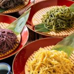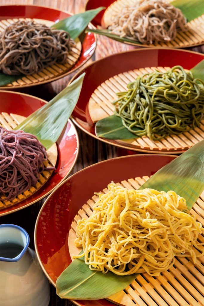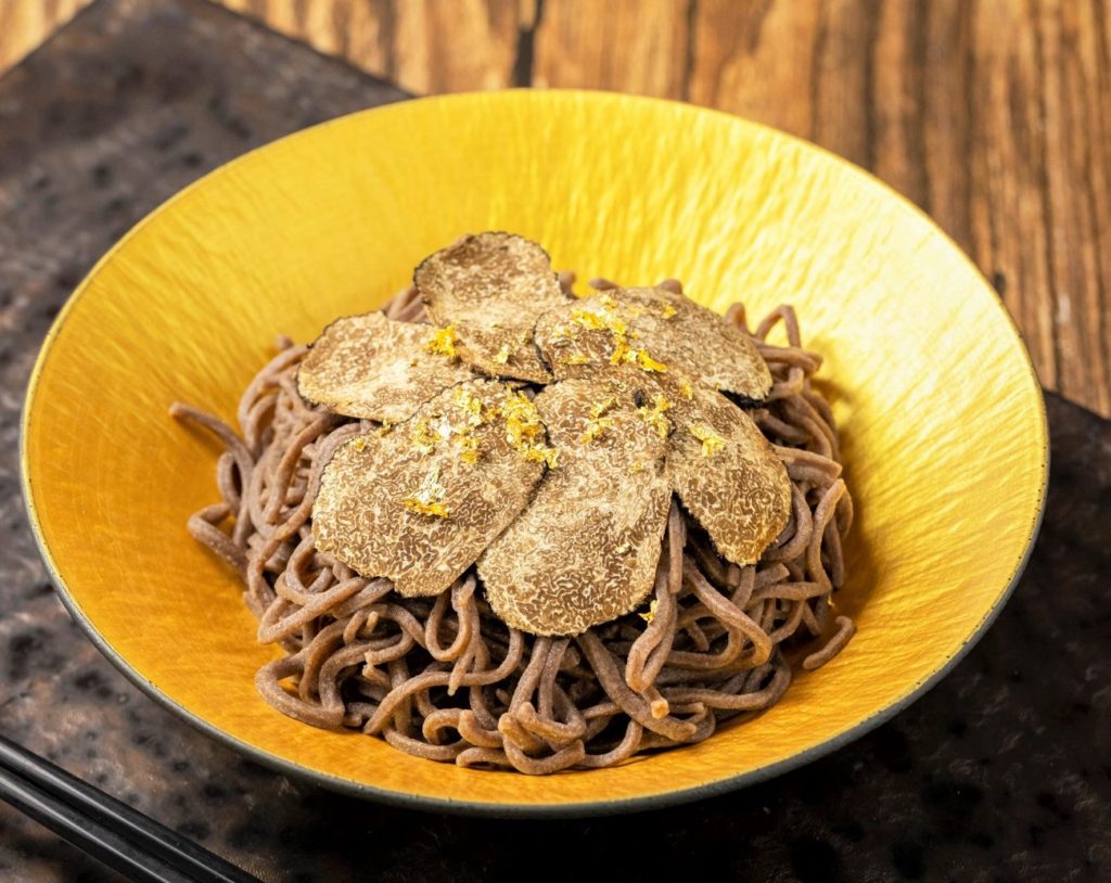 気温や湿度、そば粉の産地や状態などさまざまな条件を加味しながら、その日に打った最高の蕎麦だけを提供するのが「蕎麦十番」の鉄の掟。一口たぐれば、蕎麦の確かな風味がふわりと広がり、するっと喉の奥を通り過ぎてゆく。色も濃くどっしりした味の田舎蕎麦、紫芋や抹茶、柚子を練り込んだカラフルな季節の蕎麦、トリュフや雲丹と味わう創作蕎麦など、正統派から個性あふれる蕎麦まで幅広く、伝統と革新を垣間見ることが出来る。