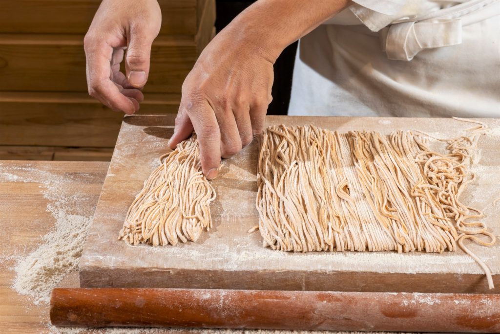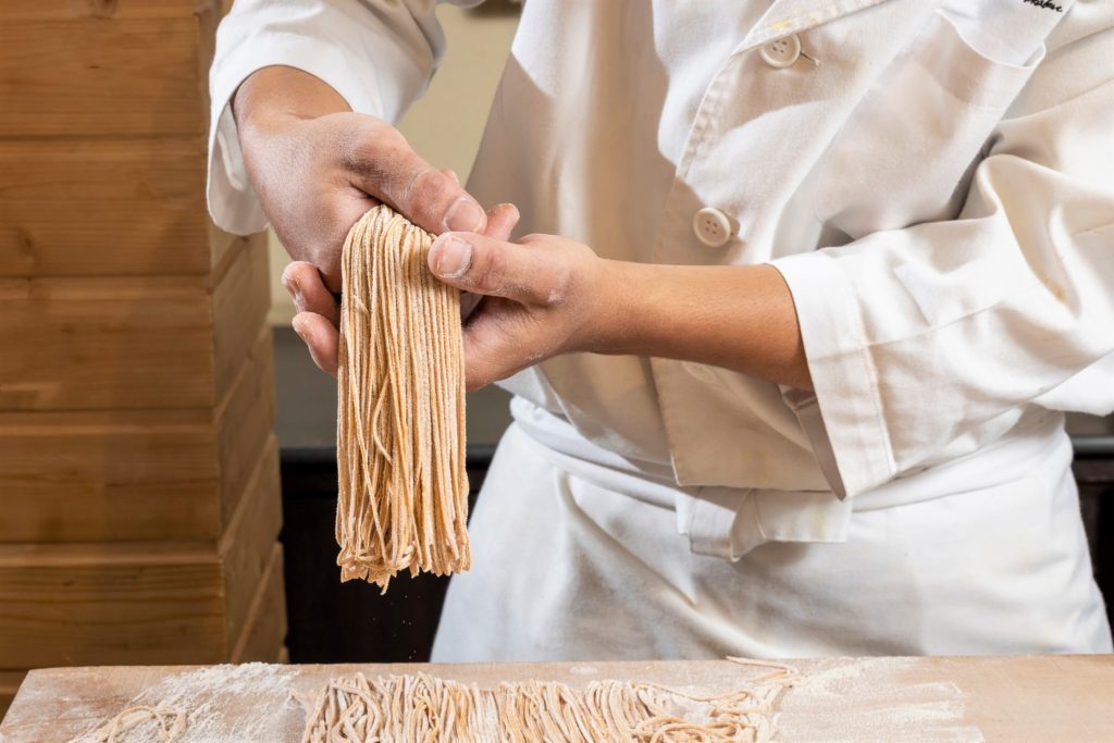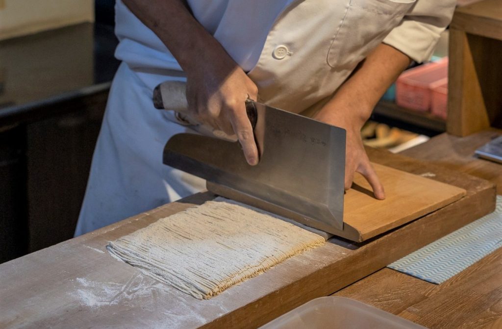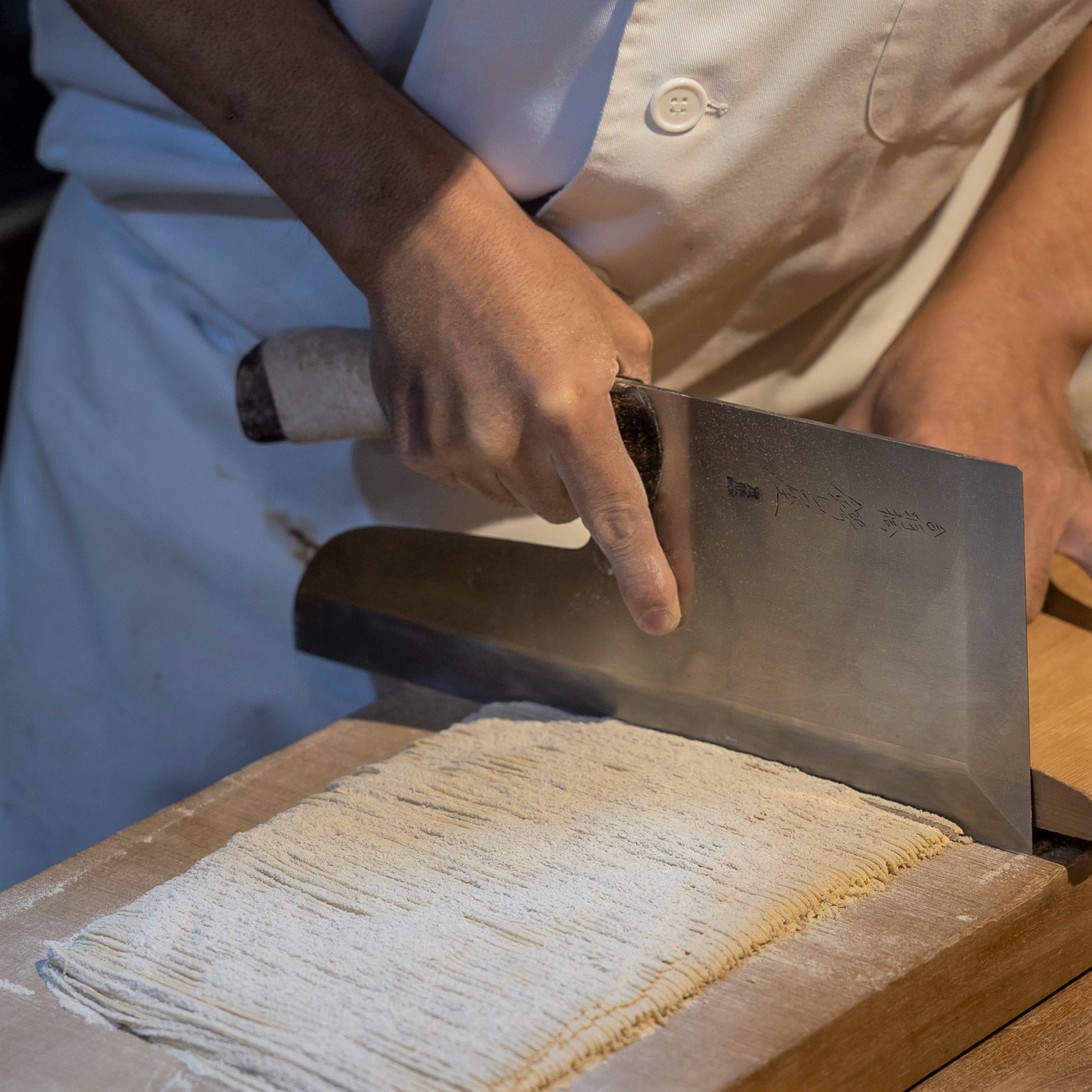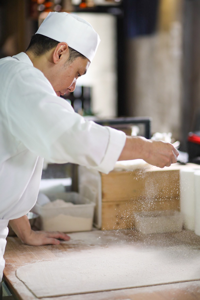 心を込めて蕎麦を打つ職人の姿にほれぼれ。挽き立て、打ち立てをそのまま舌で感じる至福!