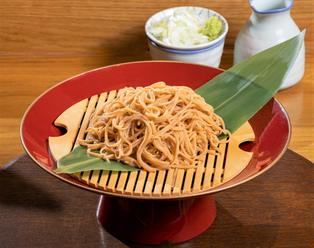 いつでも挽き立て、打ち立て。たっぷりの厚削りと花がつおを使ったつゆにつけてたぐれば、清々しい香りが鼻に抜ける