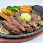 熱々の鉄板に乗せて提供される「平嶋ハラミステーキ150g」。