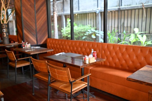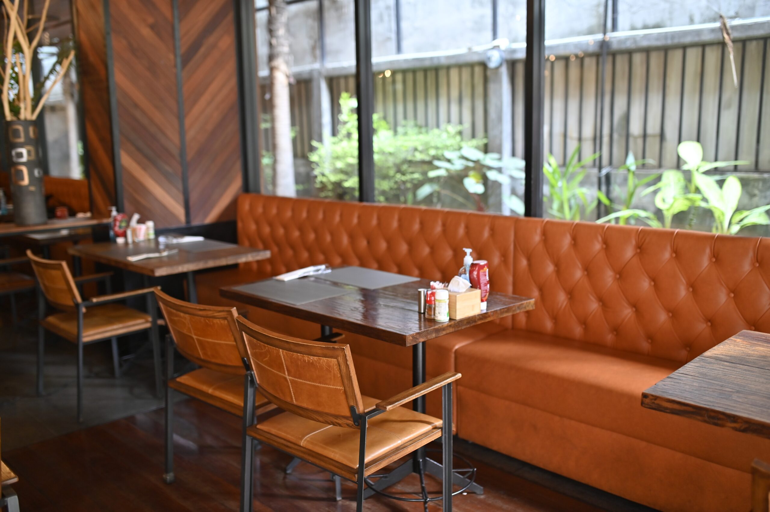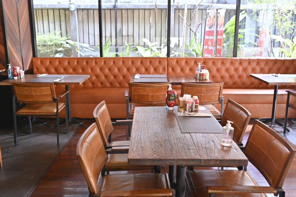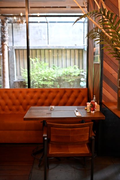 ステーキハウスと喫茶店のいいとこ取りをしたかのような店内は、親しみを感じる落ち着いた空間