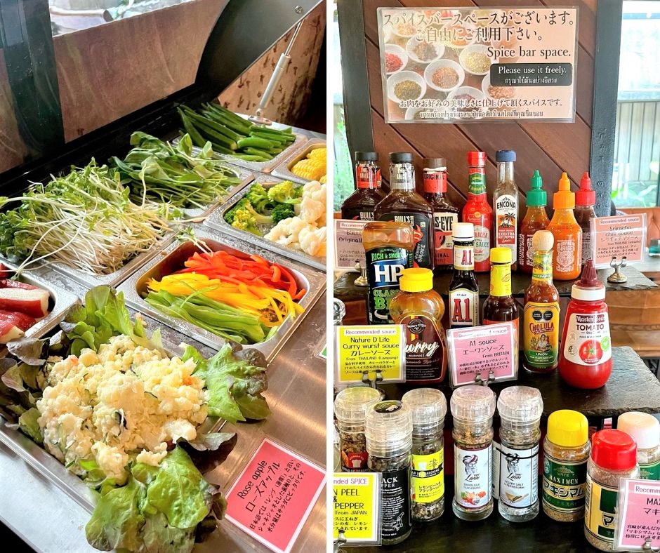 おかわり自由のサラダバーは+69Bで利用可能。