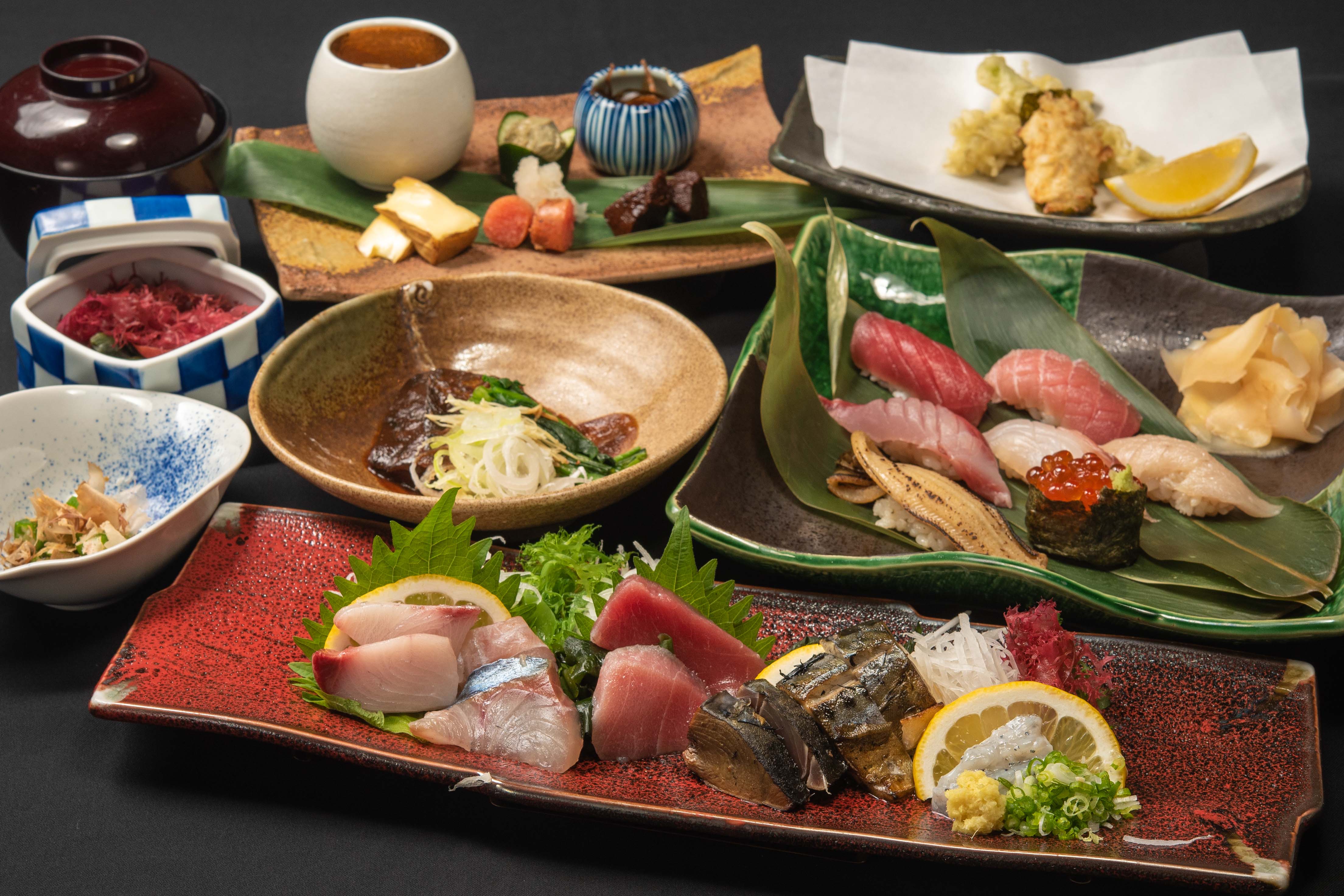白木のカウンターに座って、目の前で職人が握る江戸前寿司を堪能。活魚や藁焼きもリーズナブルな価格で提供。豊富に揃う日本酒と合わせて楽しみたい。個室あり。