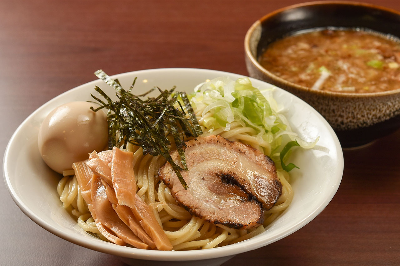 元祖つけ麺(260B)は、2日炊き続けた濃厚豚骨スープに魚介の旨みが折り重なる、歴史が凝縮された一杯。