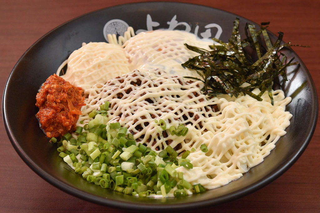 いろんな味が楽しめるまぜそば(240B)はマヨネーズがたっぷりかかって、ジャンクでやみつきな味わい。