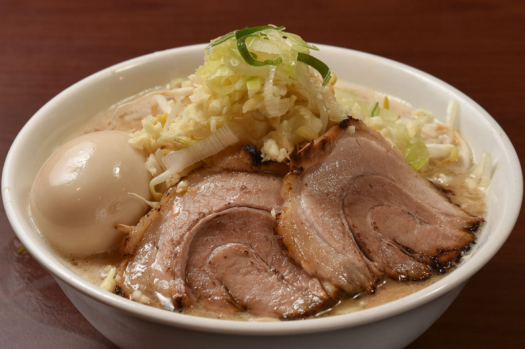 つけ麺を主軸に、ガツンとした味わいが特徴のガーリックベジタブル(250B)、繊細な風味の大勝軒特製中華そば(240B)、辛い中にも鮮烈なウマさが光る激辛スパイシーらーめん(290B)など、太麺・中太・細麺を使い分けながら多彩な麺の世界を展開。