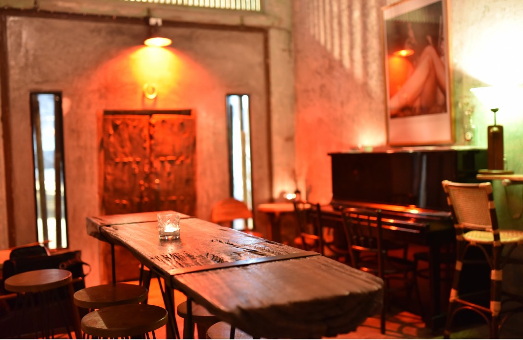 分厚い木の扉を開けると、強面ながらやさしいバーテンダーがお出迎え。タイフルーツを使った日替わりのカクテルは、黒板のメニューをチェック。ミクソロジストに好みを伝えてオリジナルカクテルのオーダーもOK。チャームに天津甘栗が出てきちゃうのは中華街ならではです。