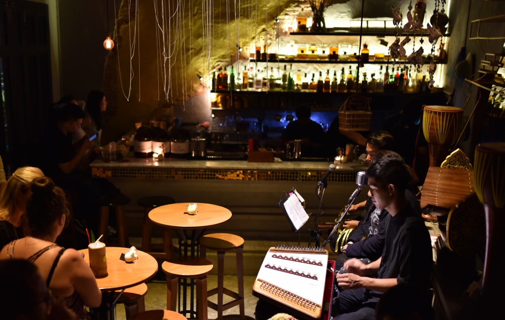 中華街の近く。キム(タイの伝統楽器)の生演奏が圧巻。ヤードーン(タイのハーブ酒)も。