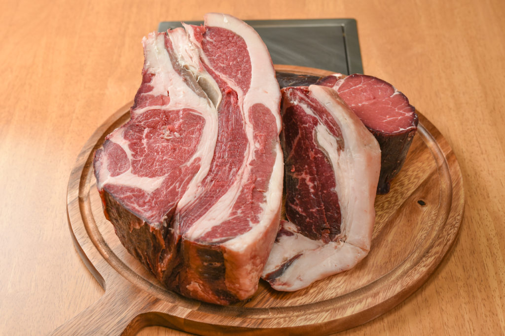 見るからに美味しそうな神戸牛を一頭買いしているから思いのほかリーズナブル。写真はエイジングビーフ。