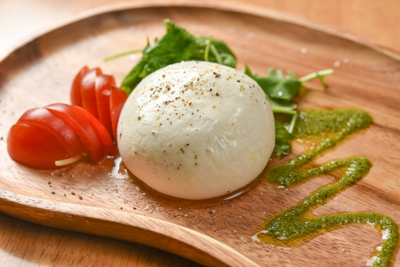 クリーミーでフレッシュなブラータチーズ(280B)はワインとの相性抜群。