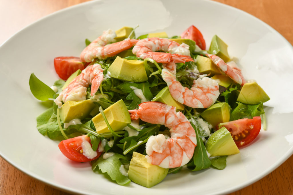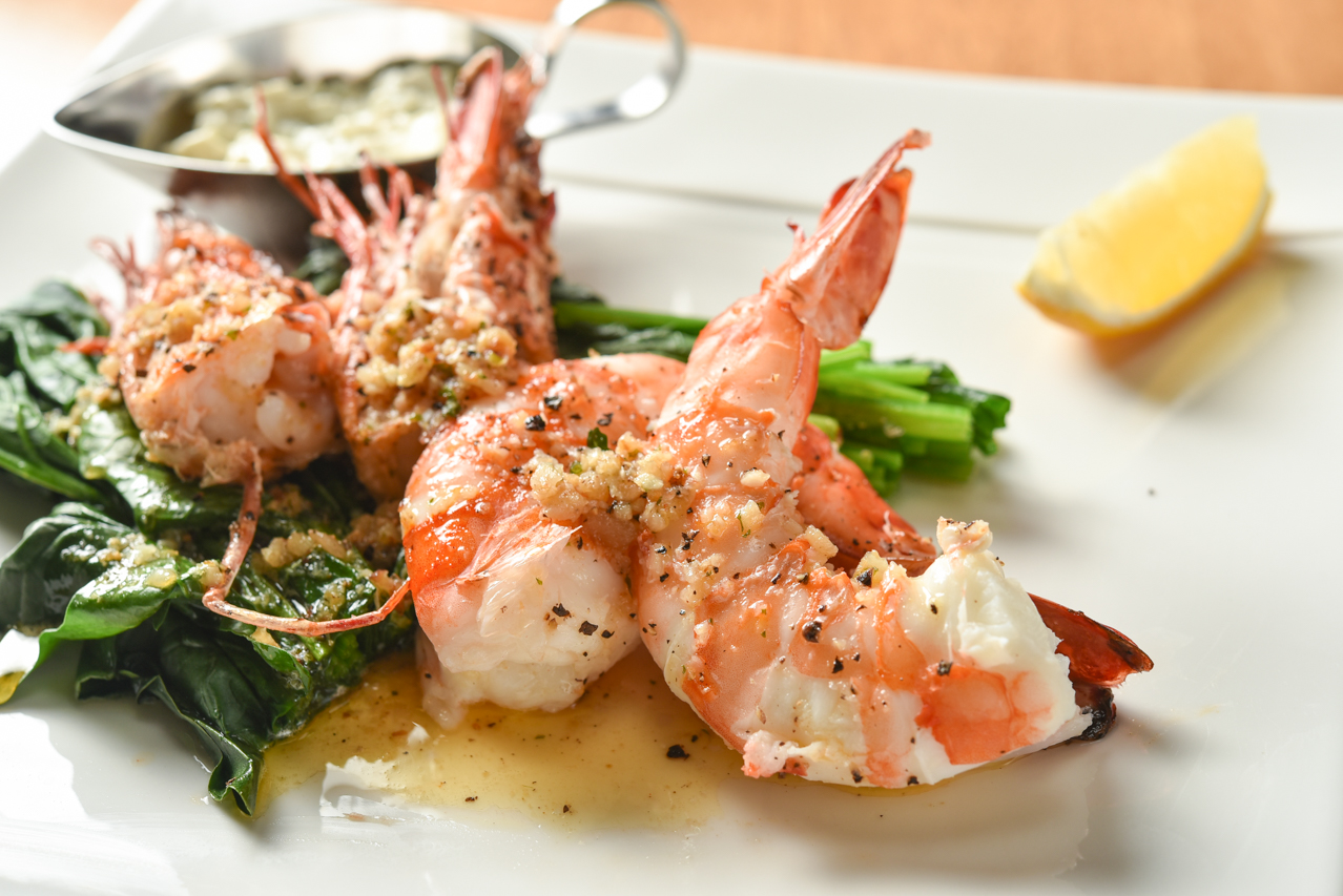 食欲をソソるガーリックで味付けされた大エビはプリップリで食べ応え満点。