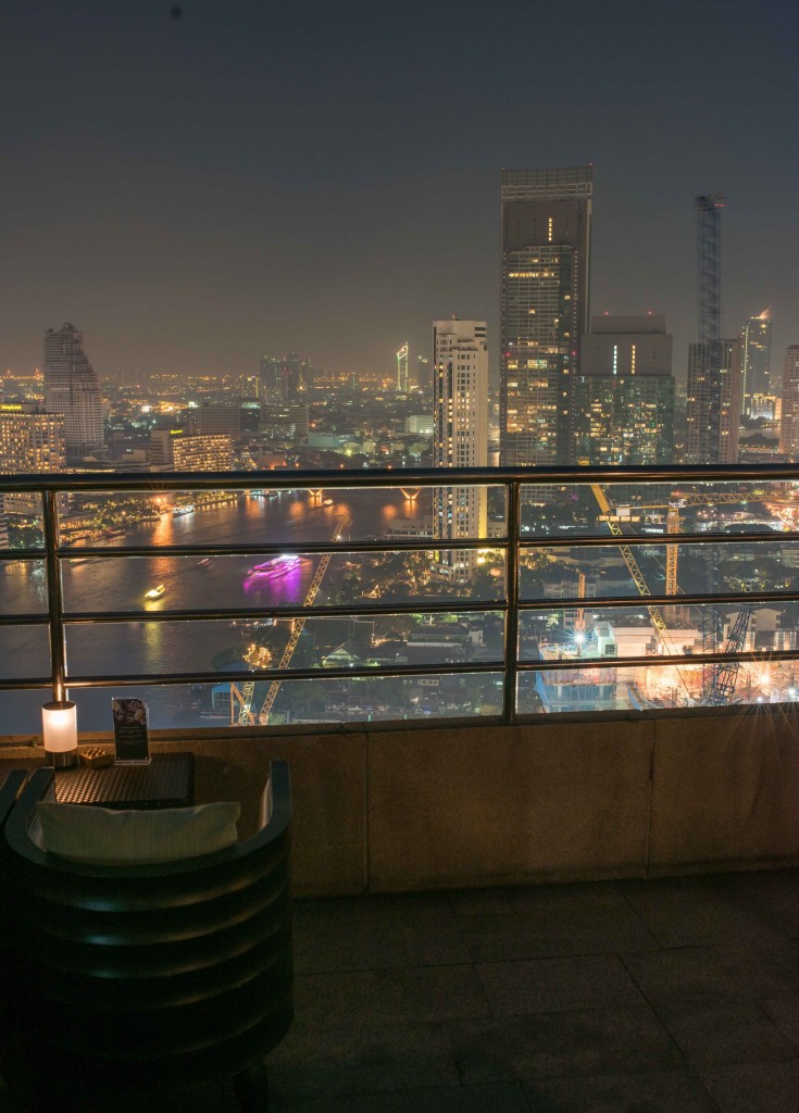 リバーサイドのミレニアム・ヒルトン・バンコク内「スリーシックスティー・ラウンジ」は、その名の通り360度全方向の景色を望める円形型ラウンジ。未来的なデザインのフロアを一周すれば、大きなガラス窓ごしに、都心の摩天楼から王宮エリア、前王朝の都トンブリー……と、歴史的風景が次々と視界に入ってくるだろう。照明を少し落としたムーディーな空間に、しっとり流れるのはジャズの生演奏。プミポン国王が生前愛されたというジャズを、王室ゆかりの地を前にして聴けば一層心に沁みわたる。日暮れ時、刻一刻と表情を変えるバンコクの夕景を、31階のテラス席から眺めるのもいい。こんな壮大な景色とお酒の力を借りてしまえば、普段は言えない夢や野望もスルリと語り出せるかもしれない。