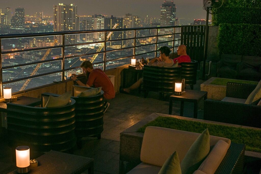 ThreeSixty Lounge & Rooftop Barの基本情報 店舗名ThreeSixty Lounge & Rooftop Bar カテゴリバー 地域その他地区 お一人様予算 THB 〜 住所Millennium Hilton Bangkok, 123 Charoennakorn Rd. 電話番号02-442-2000, 02-442-2062 営業時間17:00-1:00 定休日なし クレジットカードVISA/MASTER/JCB 座席数 個室情報 税金 サービス料 お通し代 ウェブサイト 地図 関連記事 2016.11.29 特集 2016年の締めくくりに! 天空のルーフトップバーで1年を振り返りたい!