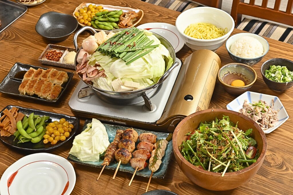 ・もつ鍋(塩or醤油or味噌)or水炊き ・おつまみ4種盛合せ ・水菜サラダ ・うま馬名物ひとくち餃子5個 ・串焼き4種 ・雑炊セットorラーメンセット ・デザート