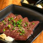 旨い牛タン(250B)は、薄すぎず厚すぎずという絶妙な厚みが旨さの秘訣。ささっと軽く炙ってレモンを効かせて召し上がれ。
