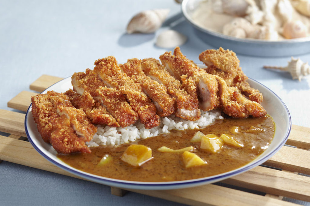 半日掛けて煮込んだ後、チルド冷蔵庫で寝かせて味を熟成された自慢のチキンカツカレー(200B)
