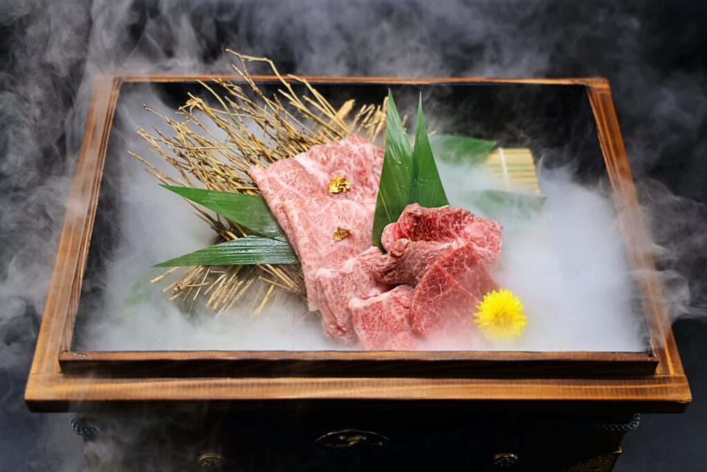 BMS10番以上のA5ランク牛肉のみを使用。自社で仕入れから行っているので、手ごろな価格で最高級牛肉を味わえます。京都の古民家風内装でライブ感溢れるカウンター席や堀ごたつの畳個室を完備。
