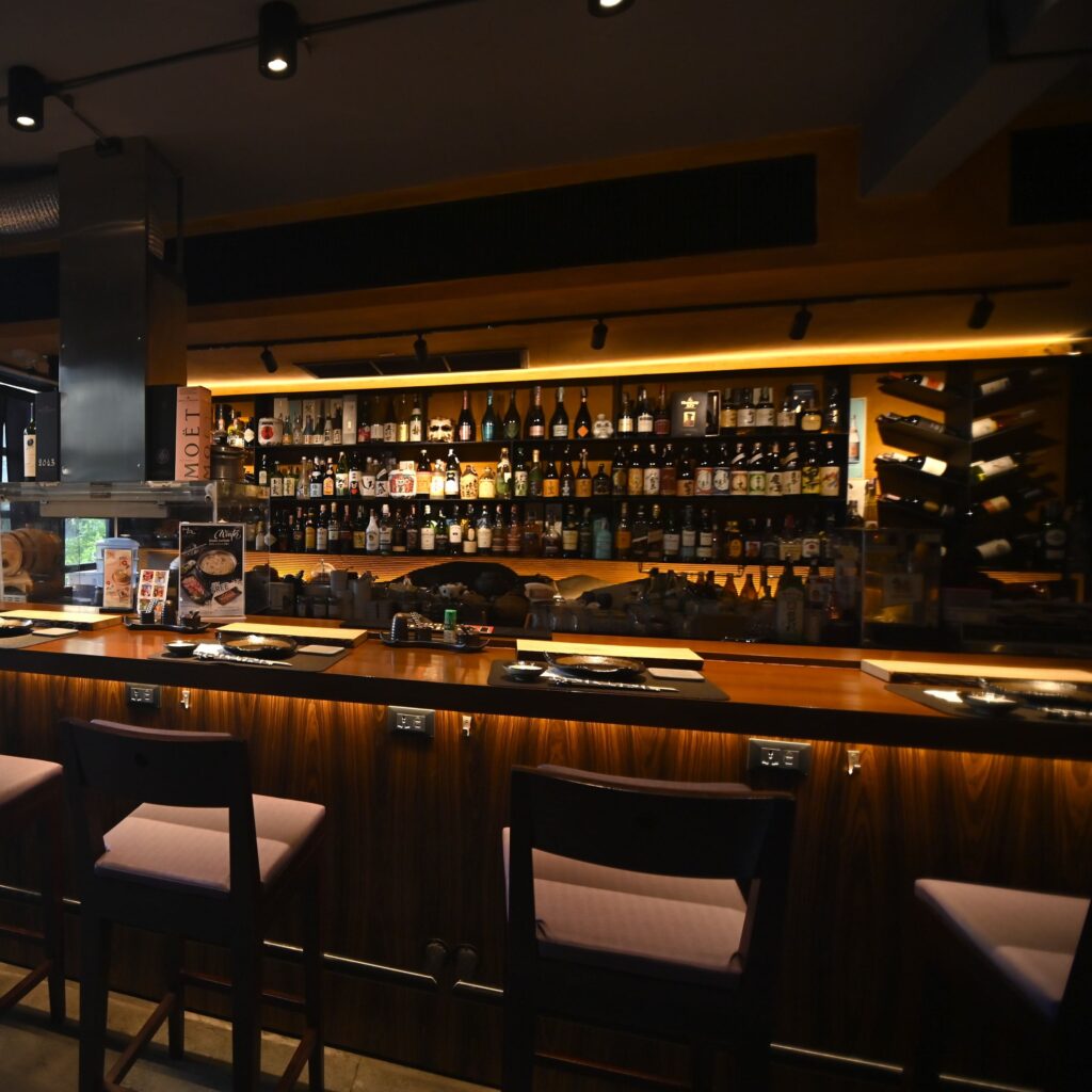2階にはバーカウンターを設置。シングルモルトスコッチなどのお酒が楽しめます。福岡市出身の日本人シェフ家下氏が、その場で作る創作料理もお忘れなく!