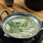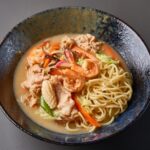 鶏ガラや豚骨で作ったスープで餃子を炊いた博多の新名物「博多炊き餃子(180バーツ)」