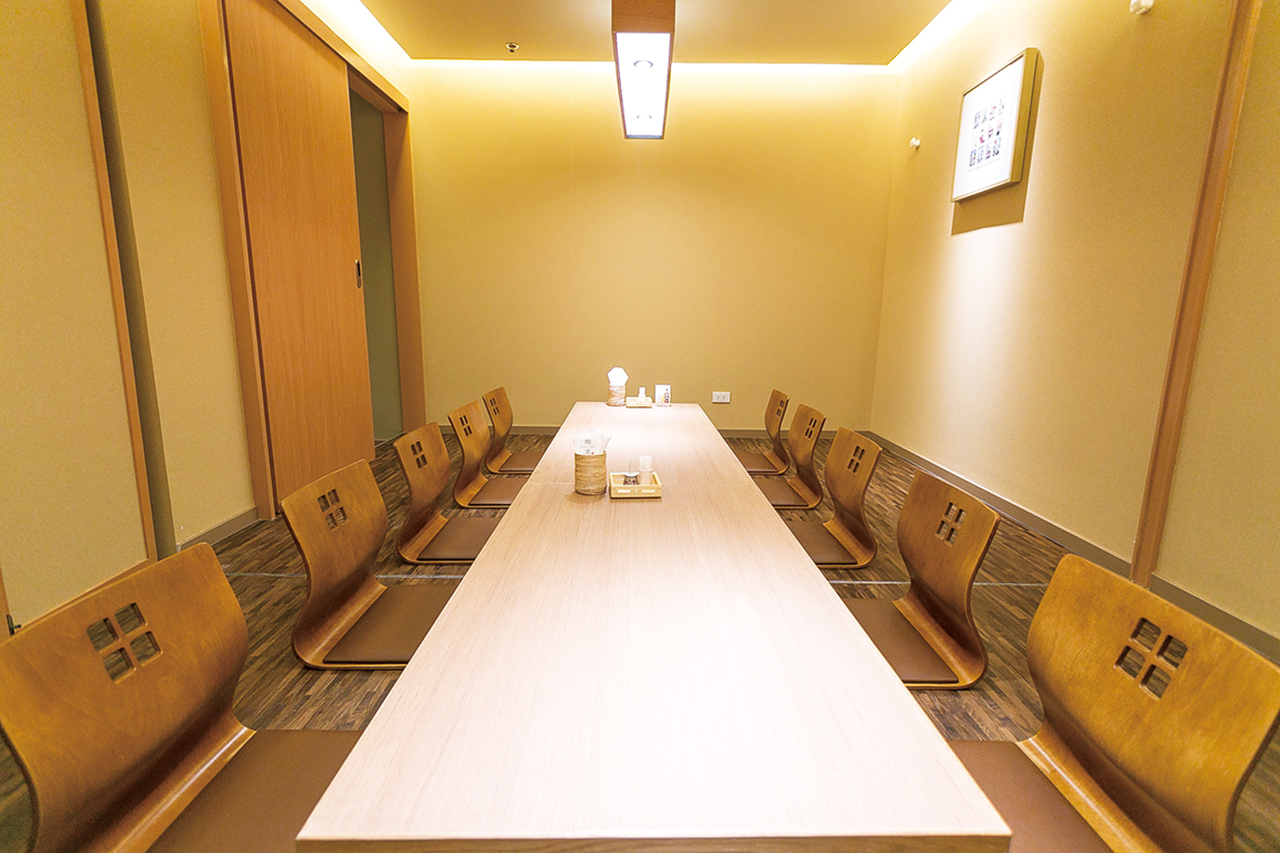 一枚板が美しいカウンターに加え、完全個室は