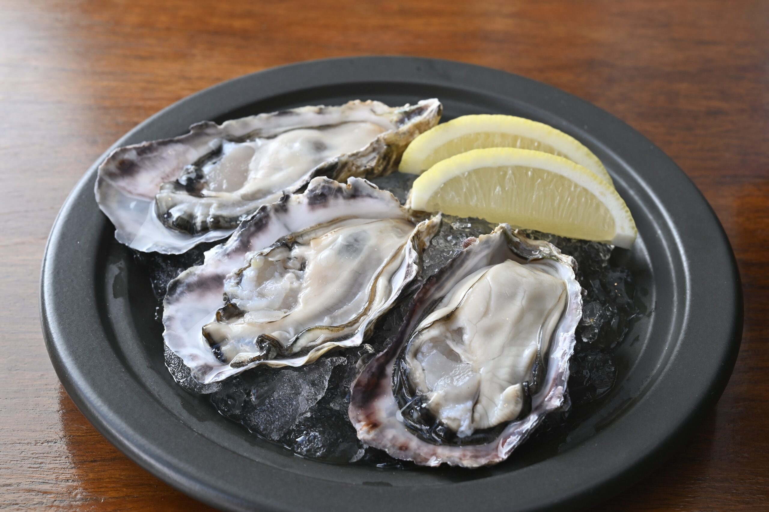 北海道から直送される生牡蠣。トッピングも多彩に用意
