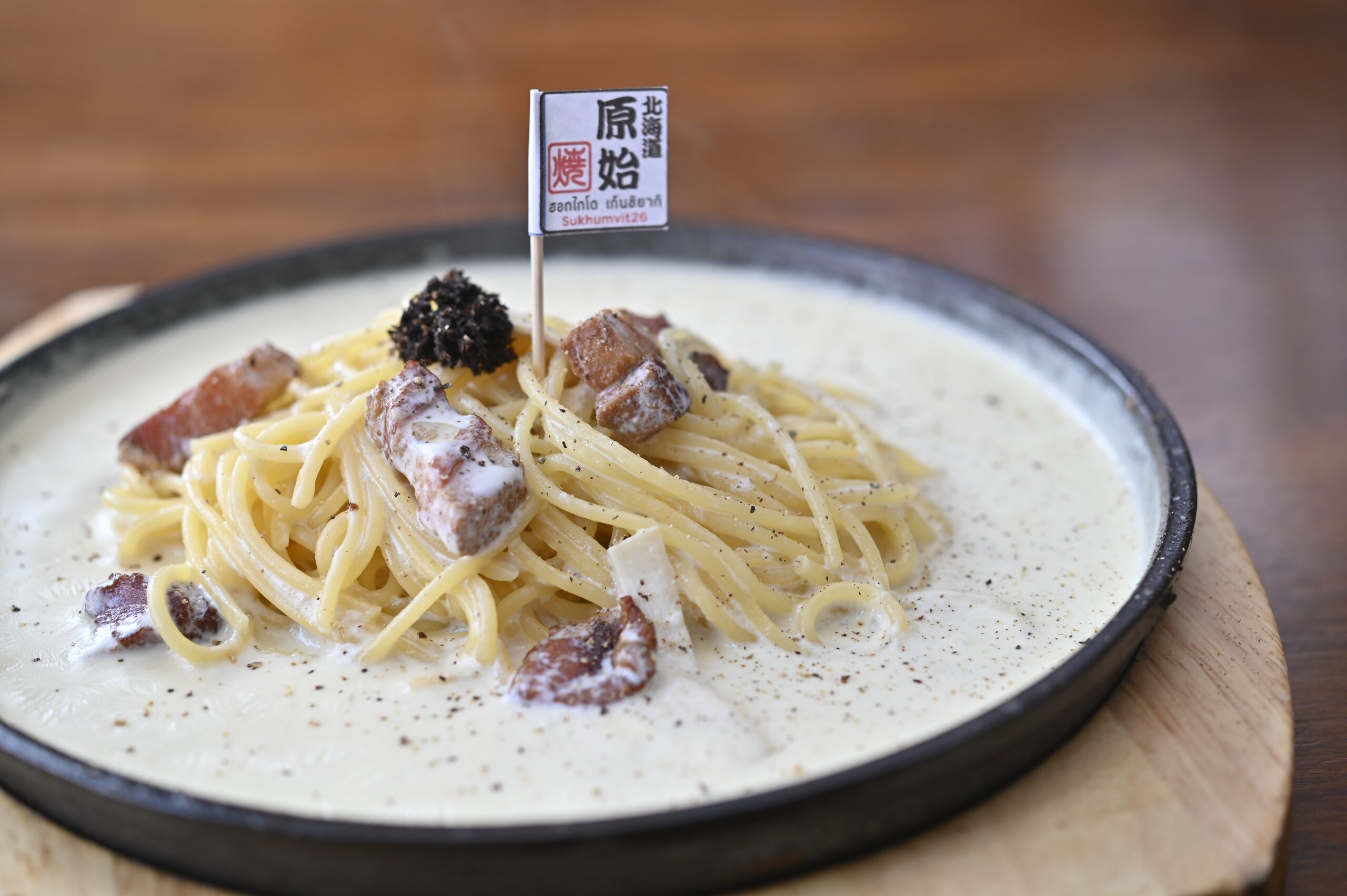 旨い海鮮料理を気軽に楽しめると、バンコク在住の日本人から支持を集める「原始焼き」。同店の名物は、高級魚として知られる金目鯛のしゃぶしゃぶ。吟味した鰹節で丁寧に出汁をとった濃厚つゆを纏えば、皮から芳醇な香りが立ち上がり、身は口の中でふんわりほろりとほどけていく。まさに至福のひとときだ。しかしそれ以上に驚くべきは、ランチなら369B、ディナーでも1〜2人前499Bというコストパフォーマンス。この味わいでこの価格とは、脱帽である。
