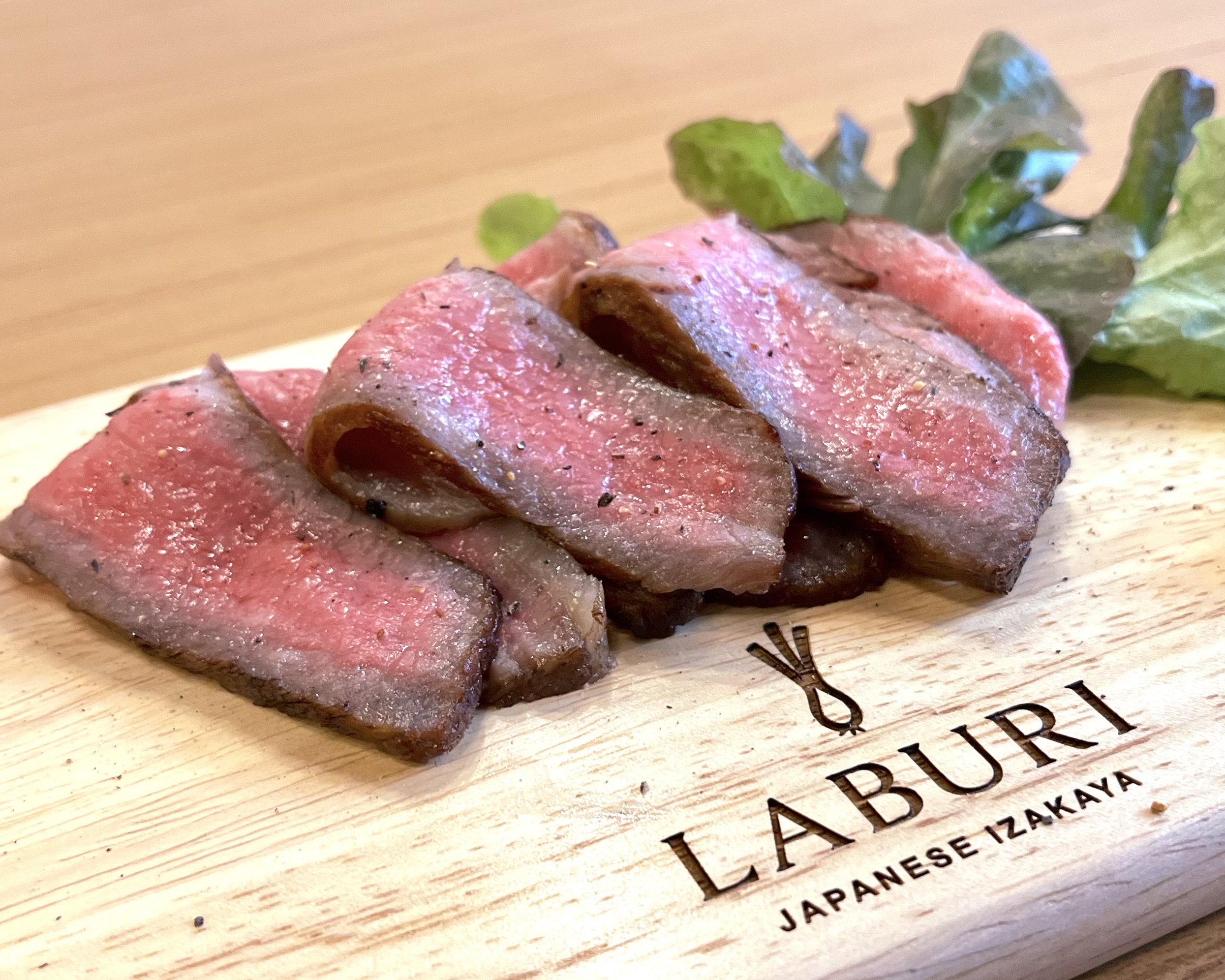 バンコクでしゃぶしゃぶを楽しみたいときに名前が挙がる「らぶり」。名物の黒豚葱しゃぶしゃぶで知られる同店だが、牛肉も抜かりないことをご存じだろうか。扱うのはA5ランク相当の近江牛。サシのたっぷり入ったタンモトも一緒に楽しめるセットが、480Bで堪能できる。山盛り葱とともに優しいあごだしツユでいただけば、肉本来の旨味が際立ち、口の中に繊細な余韻を残す。温かみのある手作りのおばんざいとともに、懐かしい日本の味に浸りたい。