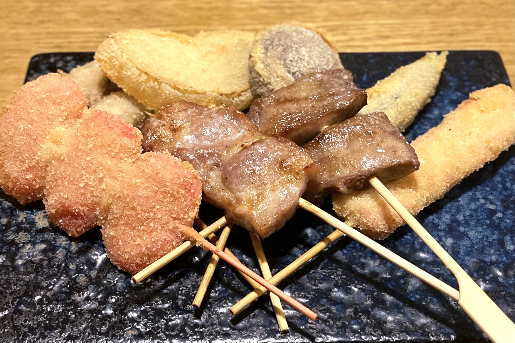 豚肉の野菜巻きや串カツなど、定番串焼き以外のメニューも充実