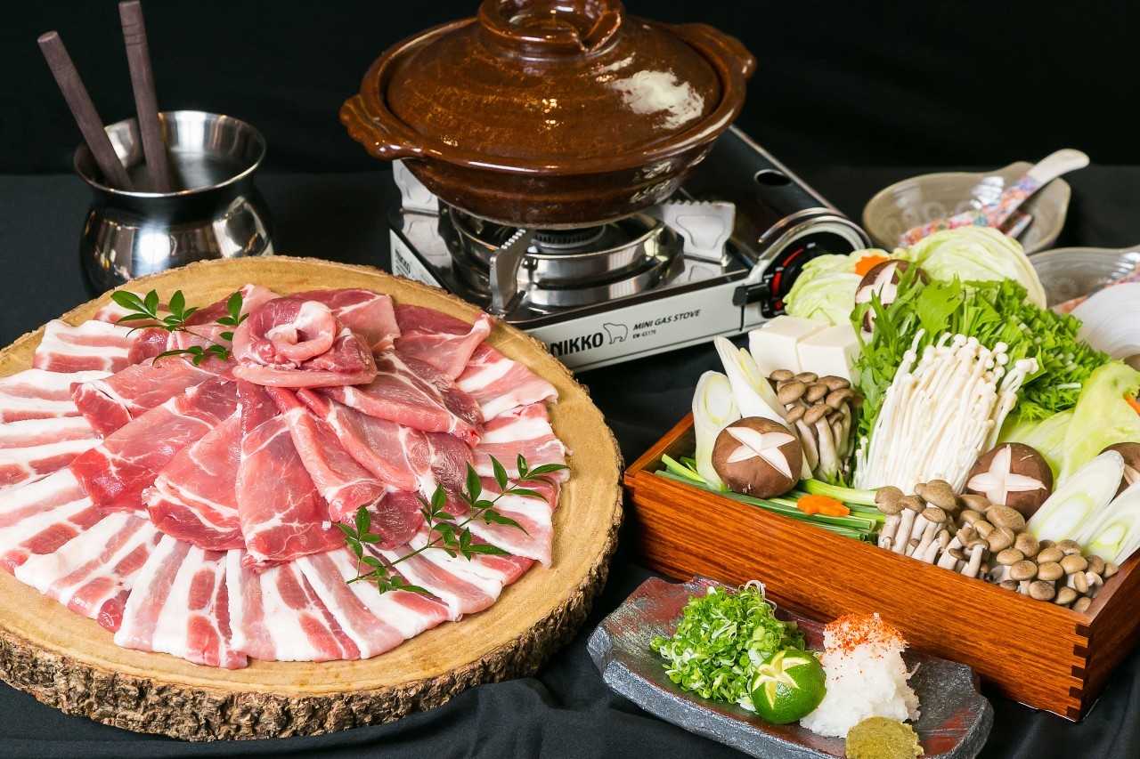 高品質な食材を洗練されたセンスで丁寧に調理する「しゃかリッチ」が挑むのは、シンプルだからこそ食材へのこだわりが際立つ黒豚しゃぶしゃぶ。きめ細やかな霜降りが美しい黒豚は、さっぱりと軽やかな食べ心地。野菜の甘みが滲む和出汁が黒豚の旨味を引き立て、脂の上品な甘さをふわりと広げる。つけダレには、柑橘香る自家製ポン酢と、香ばしいゴマを贅沢に使った濃厚なゴマダレの2種を用意。それぞれ異なる味わいで、思わず箸が止まらない。