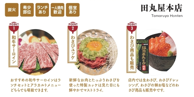 静岡で130年の歴史をもつわさび漬けの老舗がバンコクにオープンした焼肉店。静岡から取り寄せた本わさびと醤油でいただくスタイルの焼き肉です。牛肉の旨味とわさびのさわやかな辛味がマッチ。