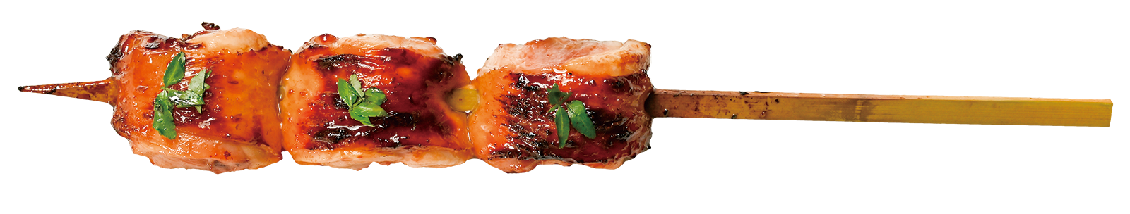 ジューシーなもも肉に皮をぐるりと巻いて焼き上げた美味しさ2倍の特製串