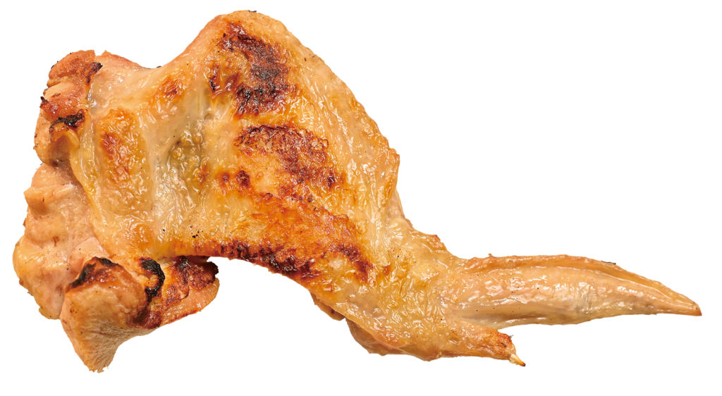 手羽元から手羽先までまるまるついて衝撃の25B。骨のまわりの肉はうまい